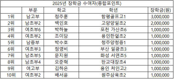 ÀåÇÐ±Ý ¼ö»óÀÚ ¸í´Ü-2025 Á¾ÇÕÆ÷ÀÎÆ® ¼øÀ§ 10¸í |